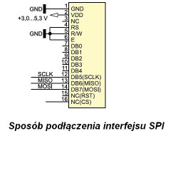 Kontroler WS0010 kompatybilny z HD44780, rozszerzony o tryb graficzny oraz  interfejs SPI.